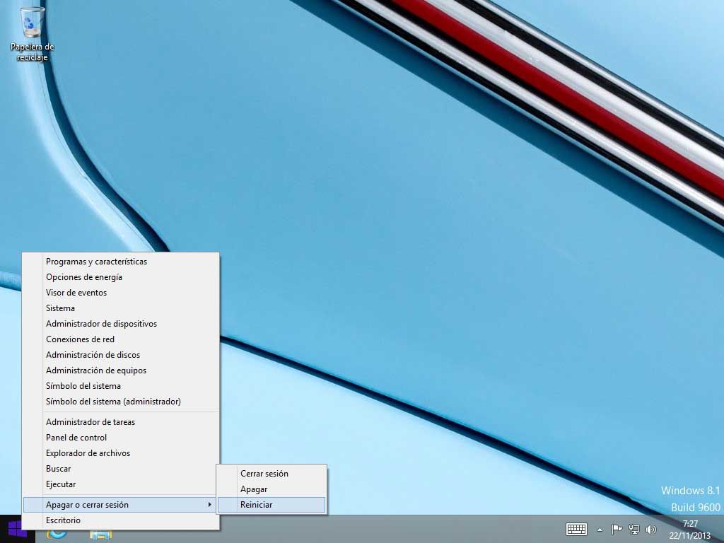 Windows 8.1, sucesor de Windows 8 (También llamado Windows Blue), hasta hace poco era la más actual de las versiones del sistema operativo producido por Microsoft, luego de muchas quejas por parte de los usuarios, se dignaron a colocar de nuevo el menú inicio y algunas otras características que no están presentes en Windows 8, entre los cambios más notorios es la posibilidad de ir directo al escritorio luego del inicio de sesión, lo cual no hace la versión anterior, también pulsando el botón derecho del ratón sobre el menú inicio se accede a una variedad de opciones, destacables las de apagar, reiniciar y suspender.