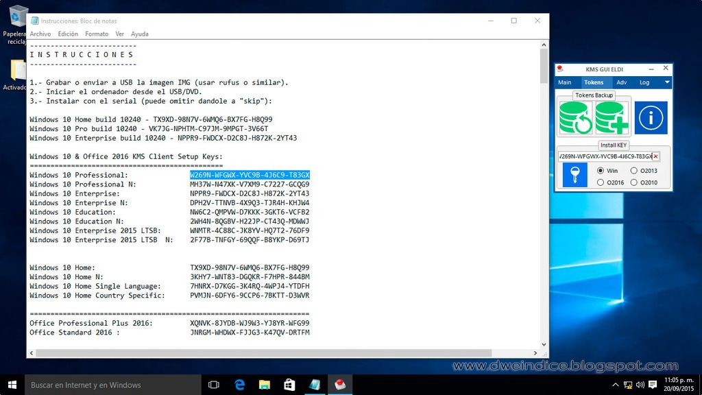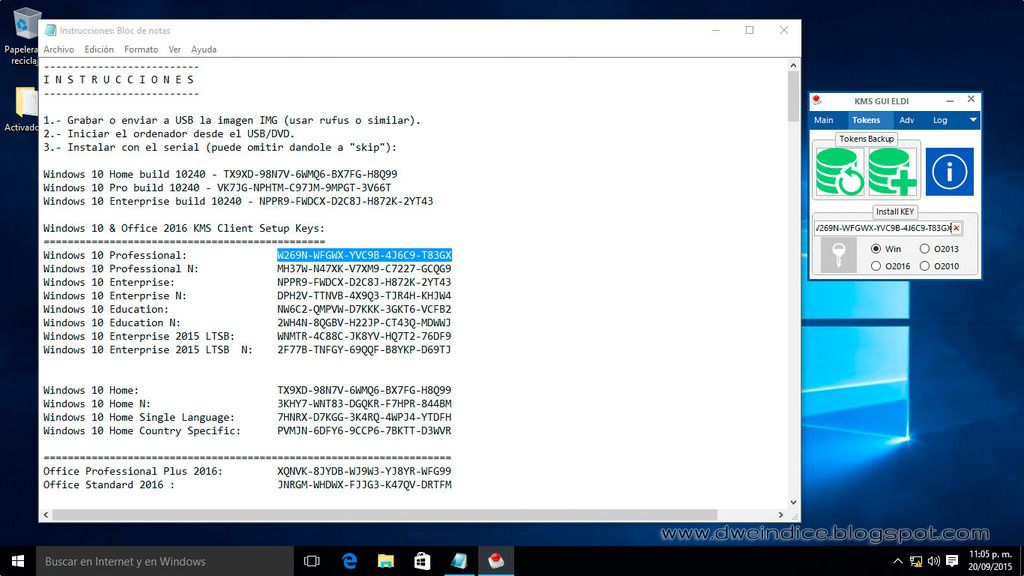 En KMSpico ve a las pestaña "Tokens" asegurate que la opcion Win este activa, pega el serial y clickea sobre el icono de llave