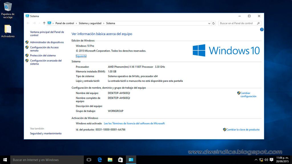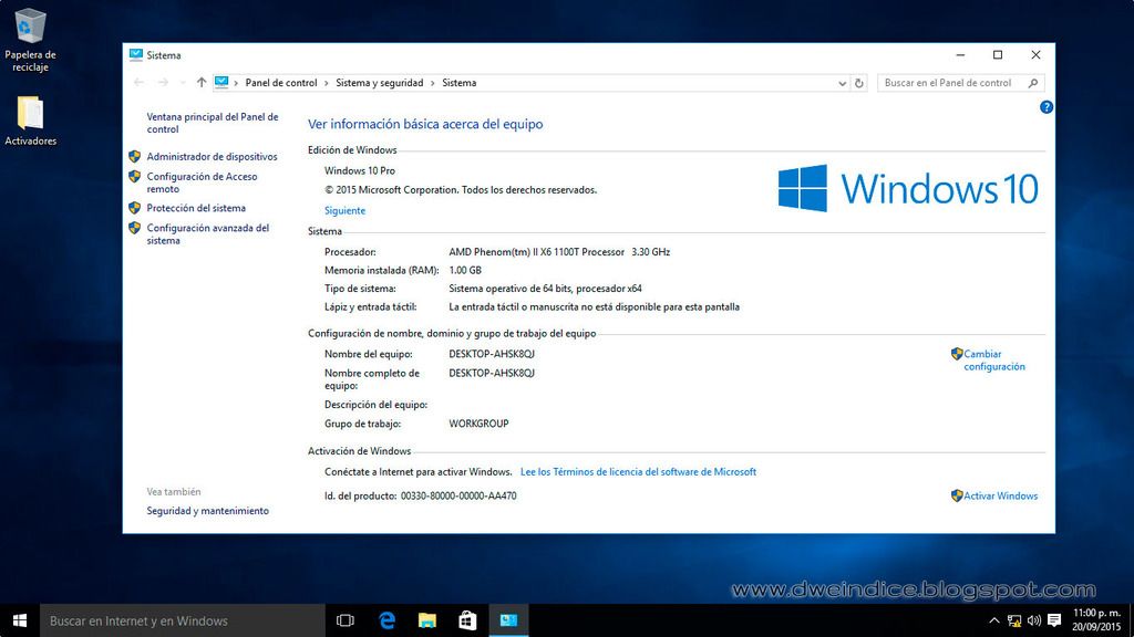 En este momento el Windows esta recien instalado, se aprecia que no esta activado aun.