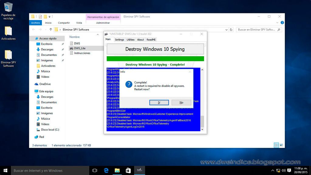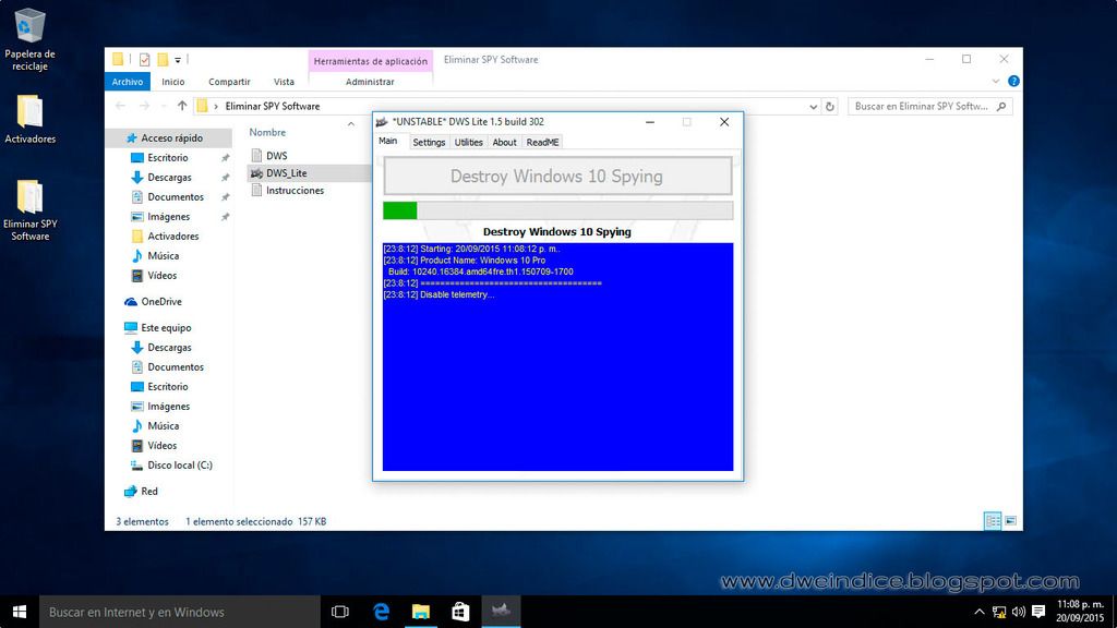 Clickea el "Destroy Windows 10 Spying" y el proceso comenzara